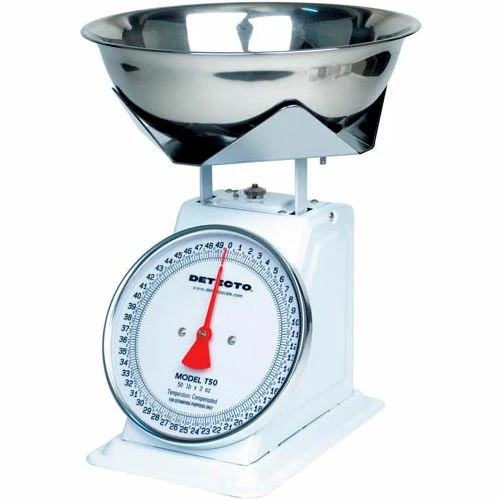 Detecto T50B Top Load Scale 50lb x 2oz W/ 8" Fixed Dial, 9" x 9" SS Platform, Removable Bowl