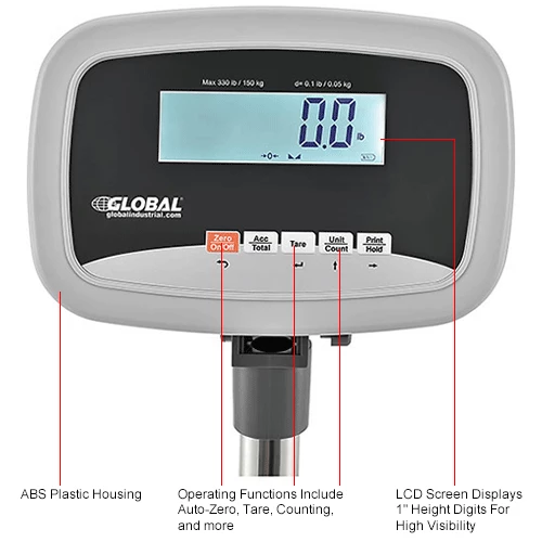 Global Industrial Industrial Bench & Floor Scale With LCD Indicator, 330 lb x 0.1 lb