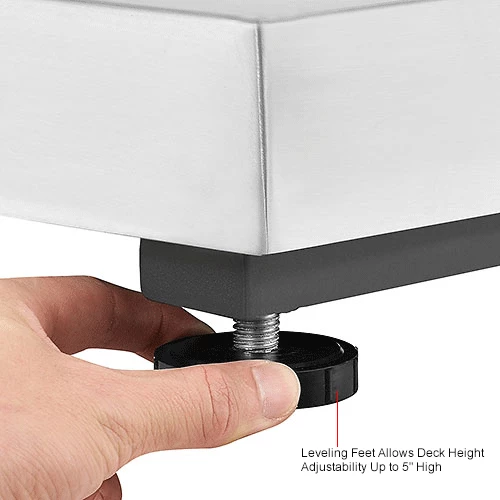 This industrial bench and scale is ideal for multiple shipping uses and environments. The leveling indicator gives you proper and precise weighing capabilities. Operating functions include auto-zero, tare, accumulate and counting, and auto shutoff with sleep mode. LCD displays six 1 inch height digits for easy viewing. The hand screw leveling feet allows you to easily adjust the deck height up to 5″ high. The hand screw knob on the post allows you to remove adjustable posts quickly and easily. Stainless steel platform measures 11-3/4″W x 15-3/4″L. Plastic display measures 9-3/4″W x 6″H and includes LCD screen. 330lb./150kg. capacity, 0.1 lb./0.04kg. accuracy. Includes 6’L power cord. 115V, AC with built-in rechargeable battery. 1 Year Limited Warranty.