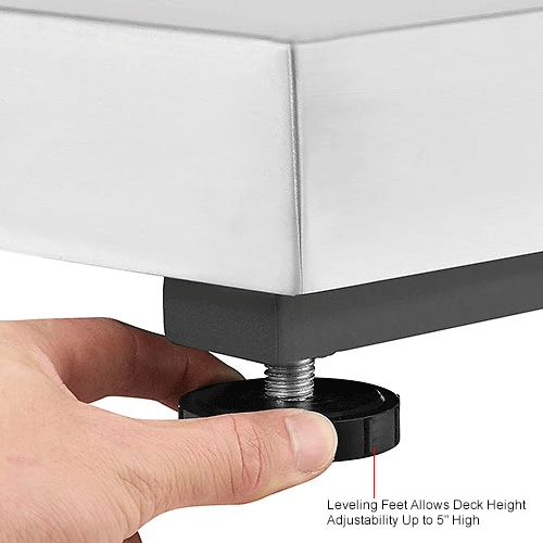 This industrial bench and scale handles capacities up to 660 lbs./300kgs for heavy duty shipping needs. The leveling indicator gives you proper and precise weighing capabilities. Operating functions include auto-zero, tare, accumulate and counting, and auto shutoff with sleep mode. LCD displays six 1 inch height digits for easy viewing. The hand screw leveling feet allows you to easily adjust the deck height up to 5″ high. The hand screw knob on the post allows you to remove adjustable posts quickly and easily. Stainless steel platform measures 11-3/4″W x 19-11/16″L. Plastic display measures 9-3/4″W x 6″H and includes LCD screen. 660lbs/300kgs. capacity, 0.1 lb./0.04kg. accuracy. Includes 6’L power cord. 115V, AC with built-in rechargeable battery. 1 Year Limited Warranty.