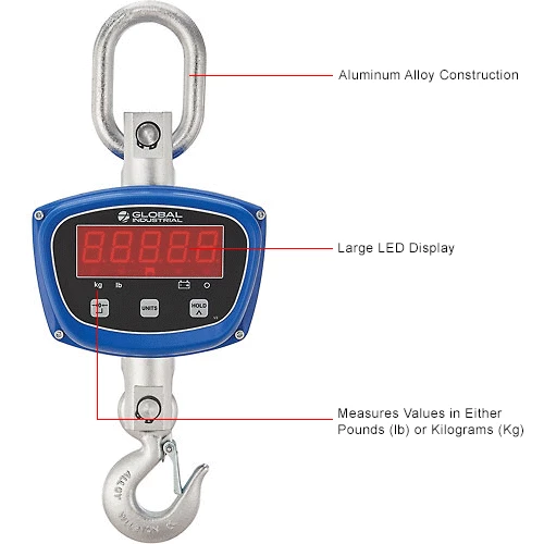 Global Industrial™ LED Digital Crane Scale w/ Remote, 500 lb x 0.2 lb