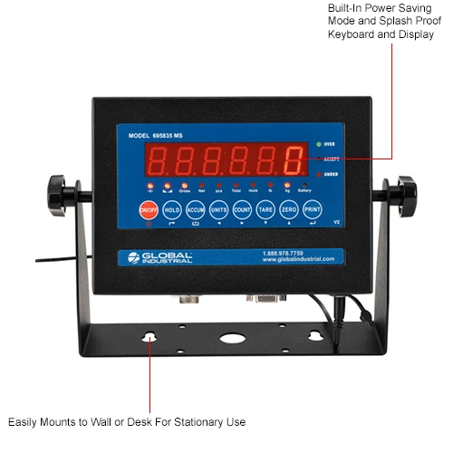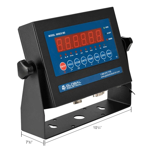The Global Industrial™ Replacement LED Indicator is compatible with Global Industrial™ NTEP Pallet Scale models 412227 and 412228 and includes multiple hold functions, measuring units—including zero, tare, and gross, and automatically updates the date and time. Certified at 5,000 divisions. 1 Year Limited Warranty.
